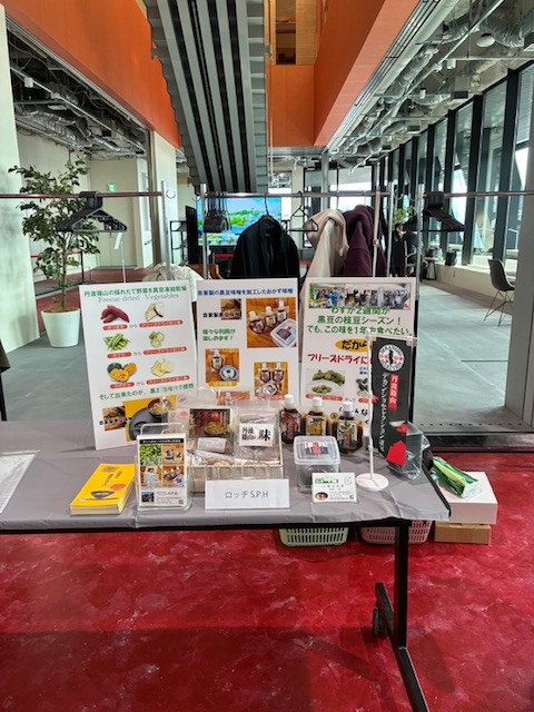 ロッヂS.P.Hは、試食として丹波篠山黒豆味噌(山椒味噌.ゆず味噌.くるみ味噌) フリーズドライ黒豆味噌汁(5種類) フリーズドライ野菜(サツマイモ.カボチャ.オクラ.黒枝豆)を出しました